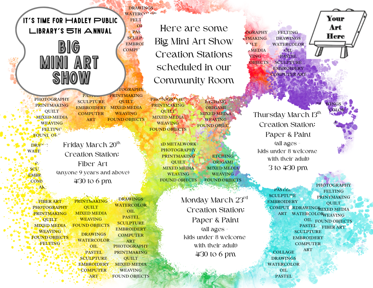 Create your Big Mini Masterpiece for our 5th annual BIG MINI ART SHOW on display through the month of April at the Library!